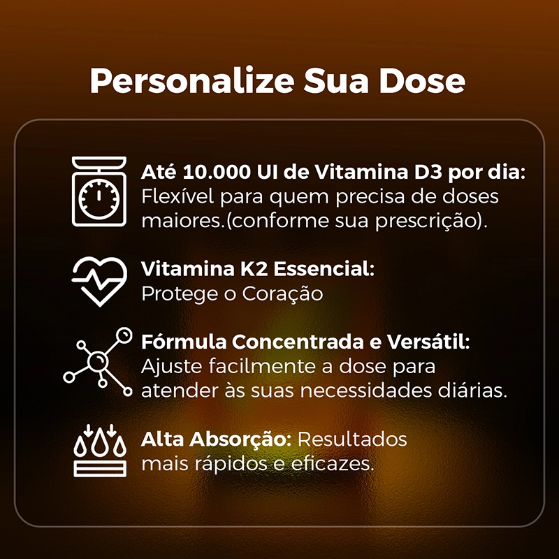 Se você busca eficiência, conveniência e flexibilidade, D3 + K2 em gotas é a escolha perfeita para otimizar sua saúde!